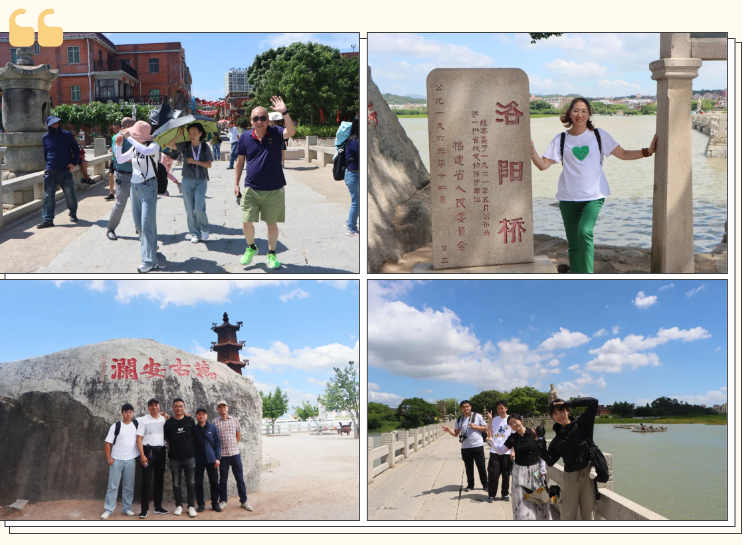 首站洛阳桥,宋代名匠蔡襄之作,横跨江海,不仅是交通要道,更是书法艺术的瑰宝。桥之中亭附近历代碑刻林立,其中“万古安澜”碑刻,字迹遒劲。职工们纷纷拍照留念,仿佛穿越时空,感受千年古韵。